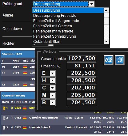 Legen Sie vor Beginn der Prüfung die Prüfungsart fest und equiCONTROL kümmert sich um die richtige Startreihenfolge und eine korrekte Rangierung der Teilnehmer.